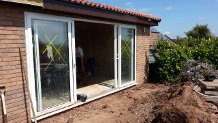 Large Extension in Cwmbran completed in July 2014, including latest high tech flooring system. Plastered finish inside ready for customer to decorate.
